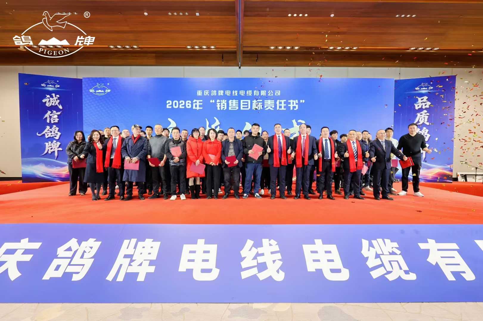 目前,公司鸽牌系列产品被评为“国家质量AA信誉资质”、“重庆名牌产品”;鸽牌公司被授予“全国五一劳动奖状”、“国家高新技术企业”、“全国工业品牌培育示范企业”、“国家级绿色工厂”、“重庆老字号”等多项称号,蝉联11届“中国线缆产业最具竞争力企业100强”,连续14年入选“重庆制造业企业100强”,连续17年入选“重庆企业100强”。